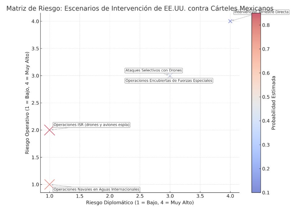 Clasificación: Escenario de Escalada. No forma parte de la dinámica actual y su implementación supondría cruzar un umbral de intervención directa en territorio mexicano, incrementando riesgos de enfrentamiento armado y tensiones bilaterales.