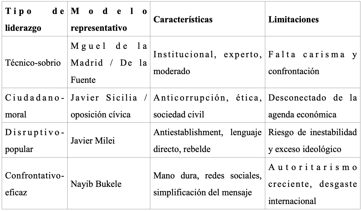 2. Tipología de liderazgo en disputa: cuatro rutas posibles para la oposición
