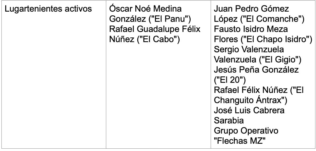 Situación Legal y Lugartenientes Activos - Cártel de Sinaloa (2025)
